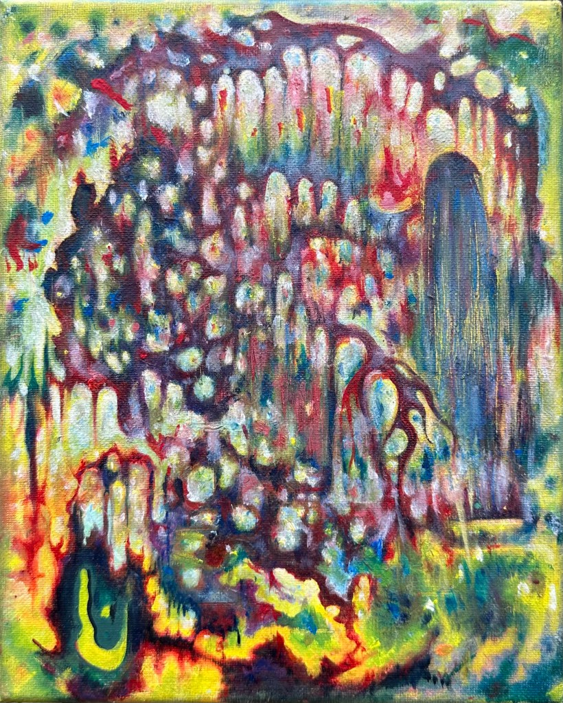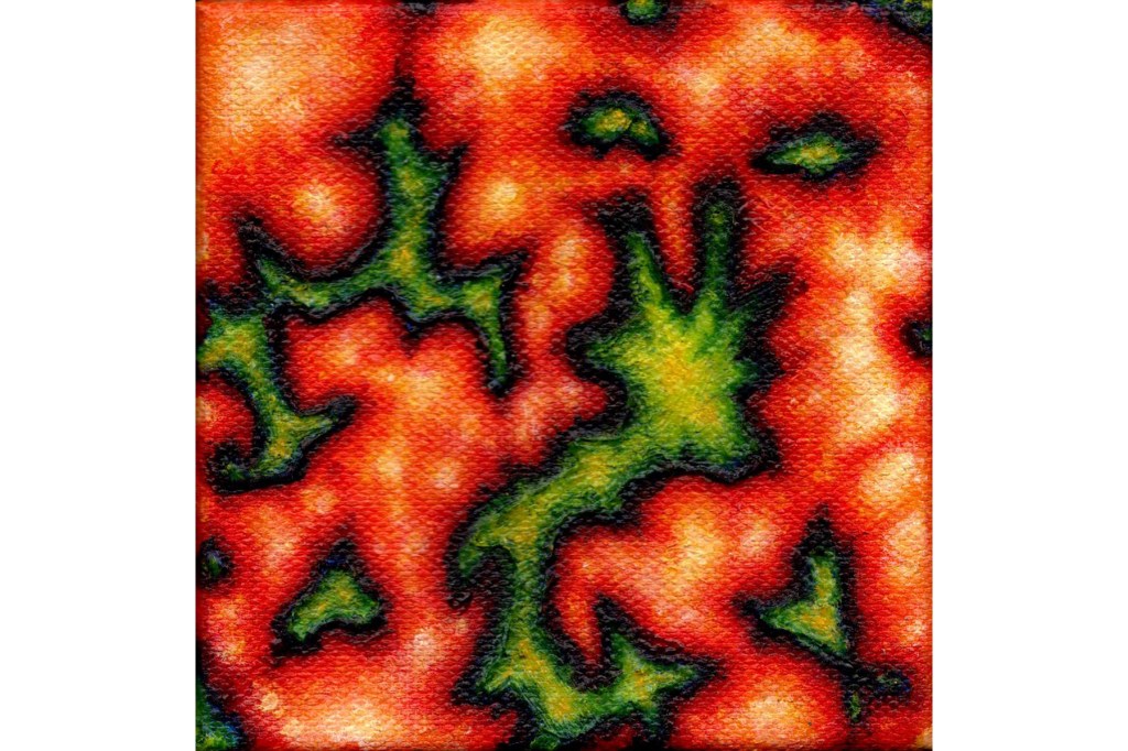 Ink, acrylic, and oil on canvas